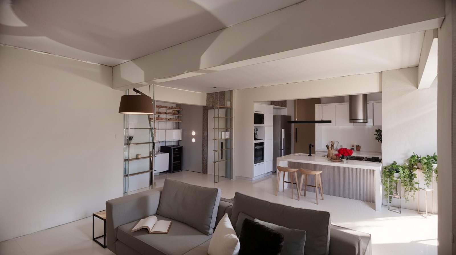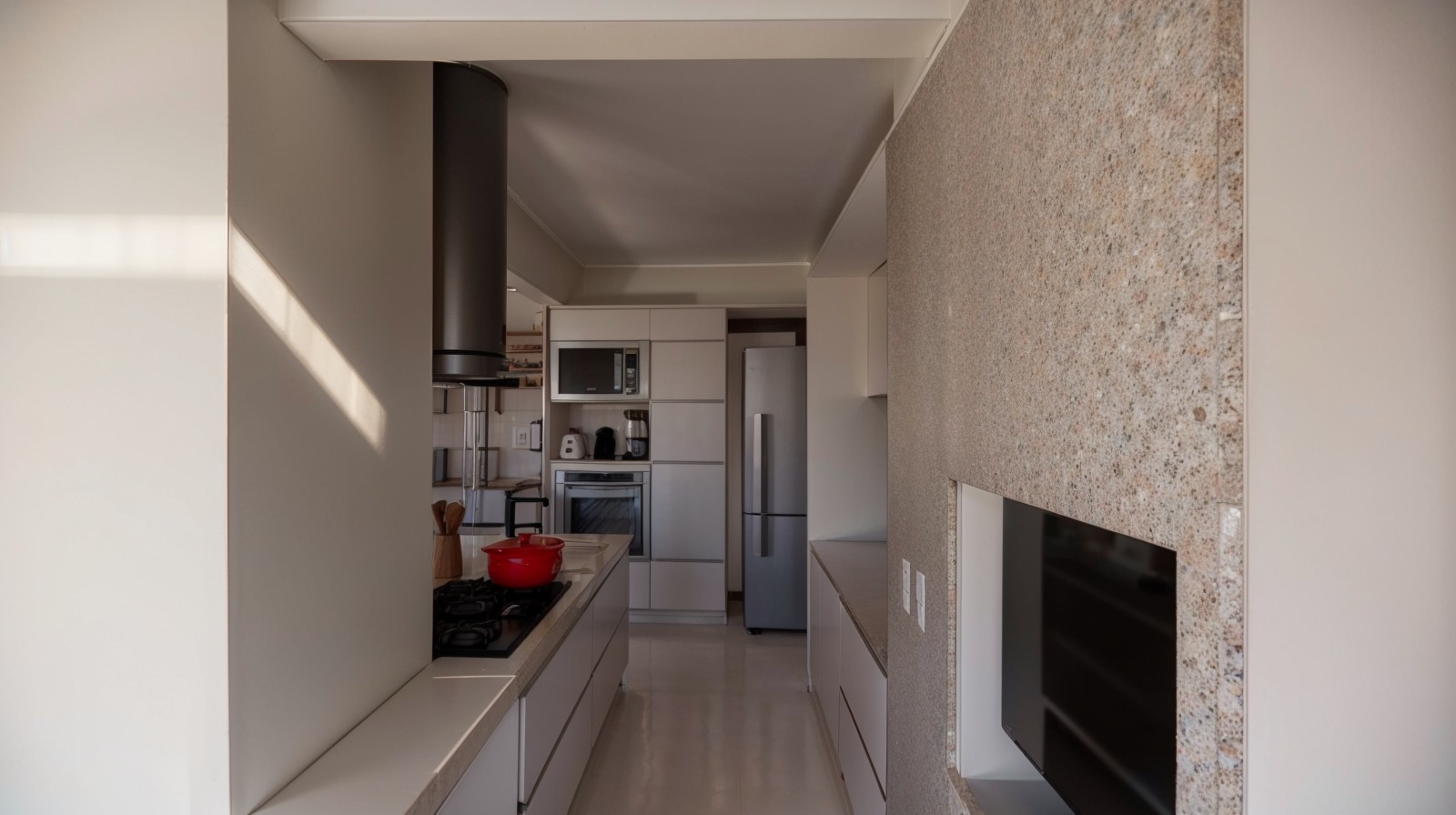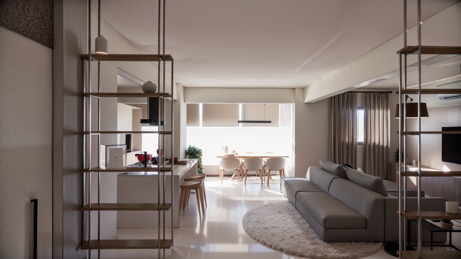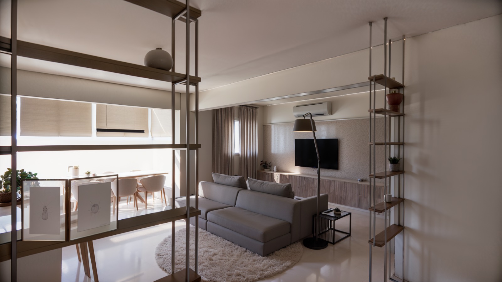 Neste projeto, a premissa foi criar um espaço que transmitisse tranquilidade, leveza e equilíbrio, refletindo a rotina serena dos moradores. A integração entre sala, jantar e cozinha promove amplitude e fluidez, enquanto os tons neutros e iluminação suave reforçam a atmosfera de calma.