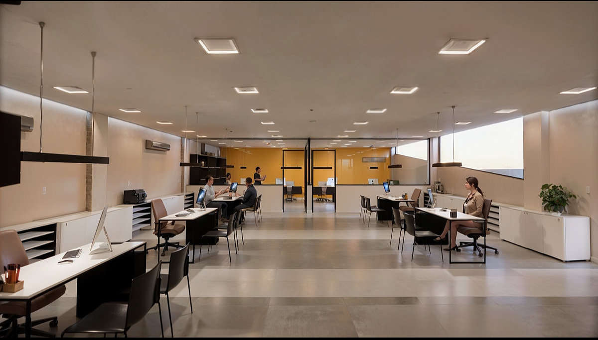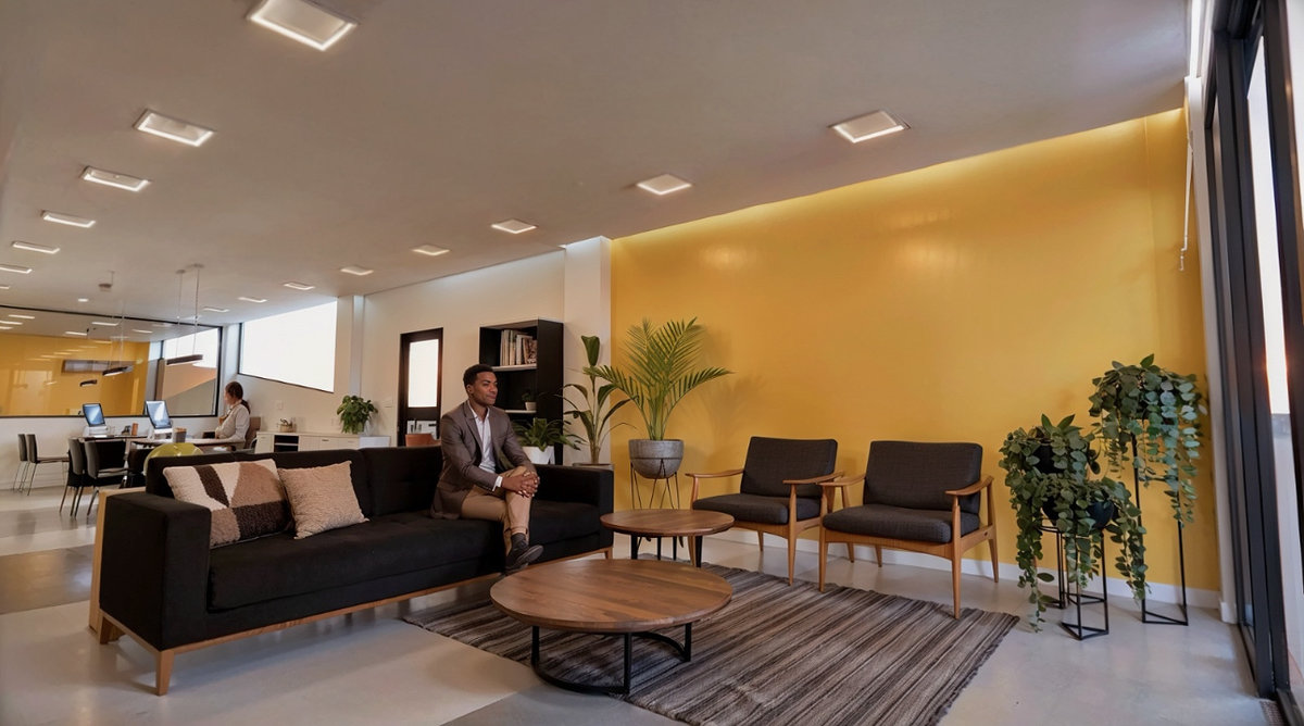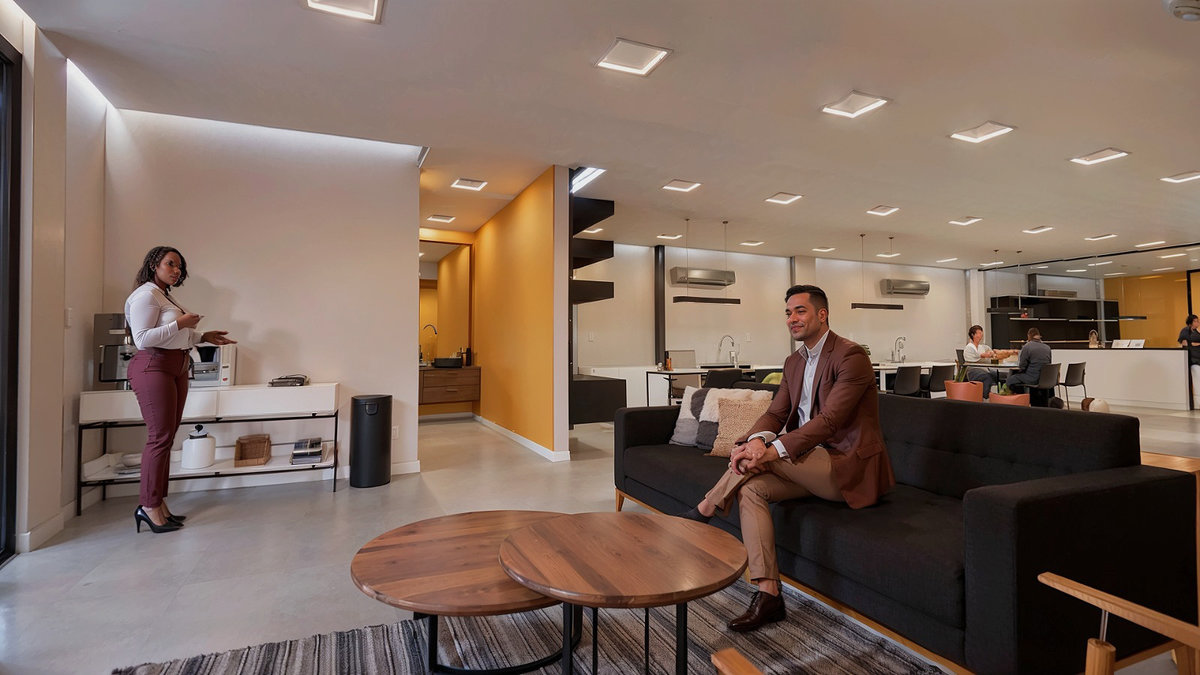O desafio deste projeto foi criar um ambiente corporativo funcional, fluido e ao mesmo tempo acolhedor, um espaço de trabalho que promovesse bem-estar, produtividade e conexões reais.