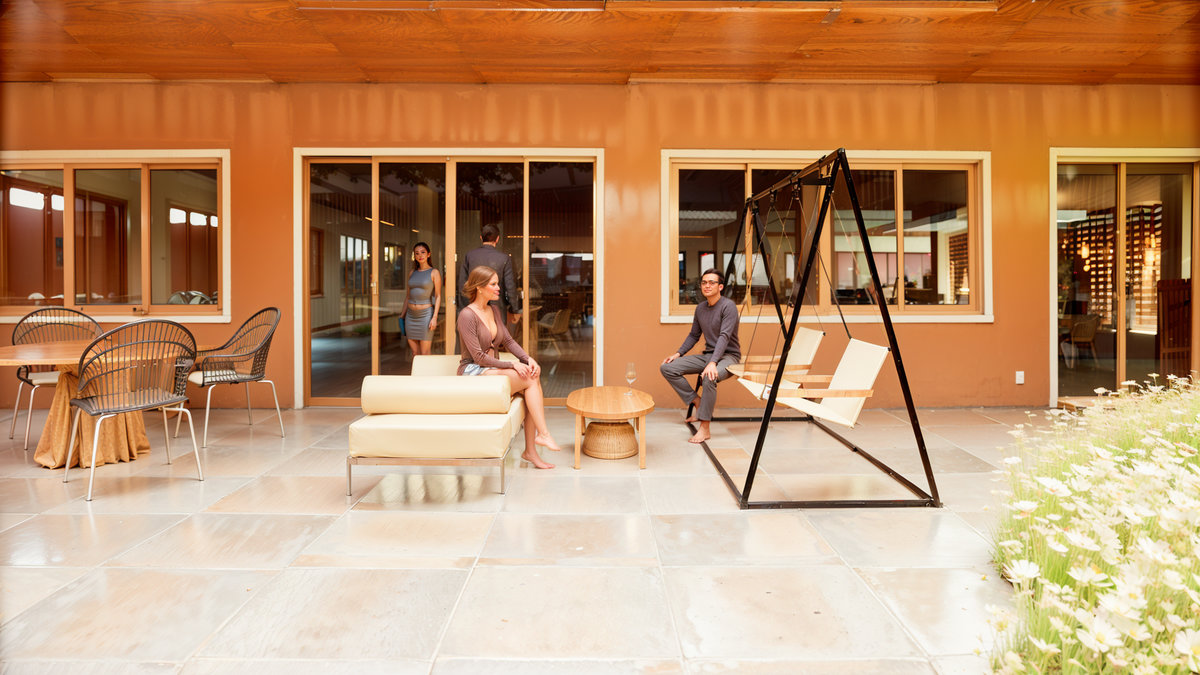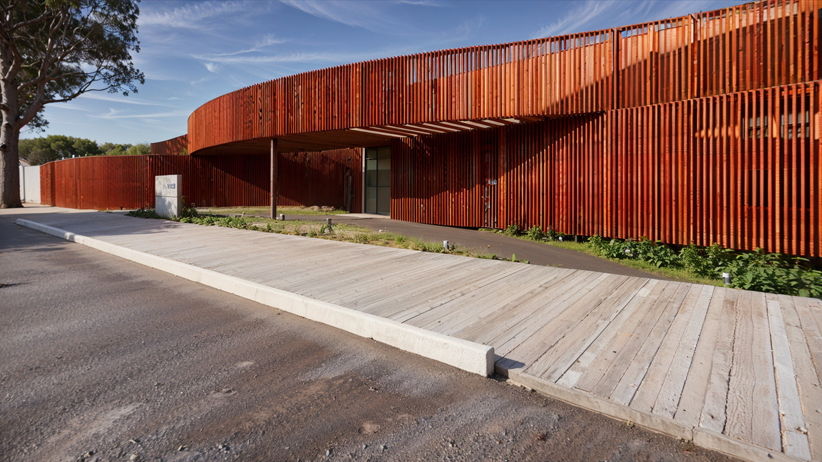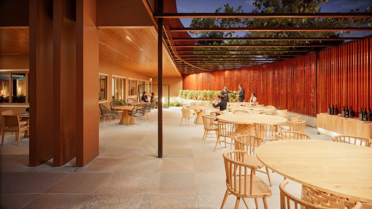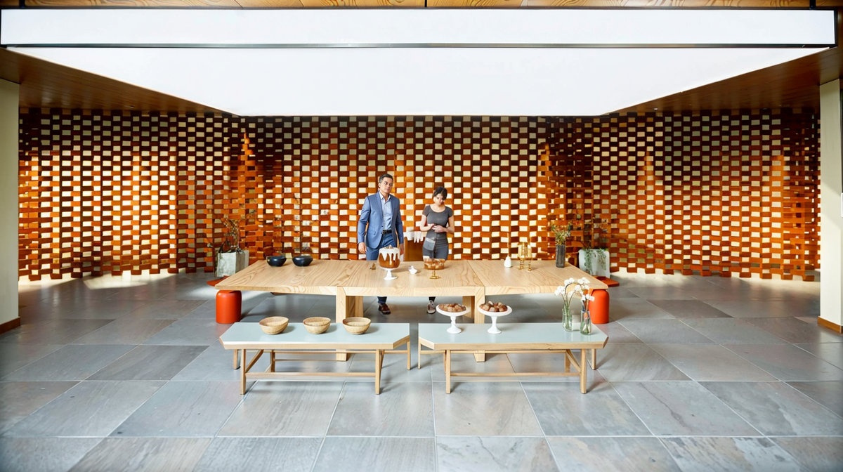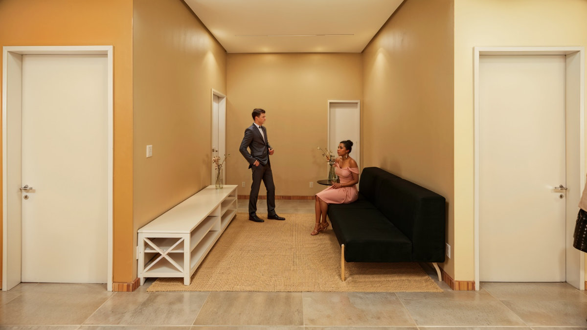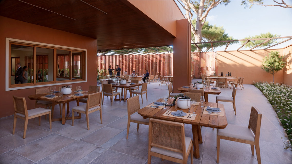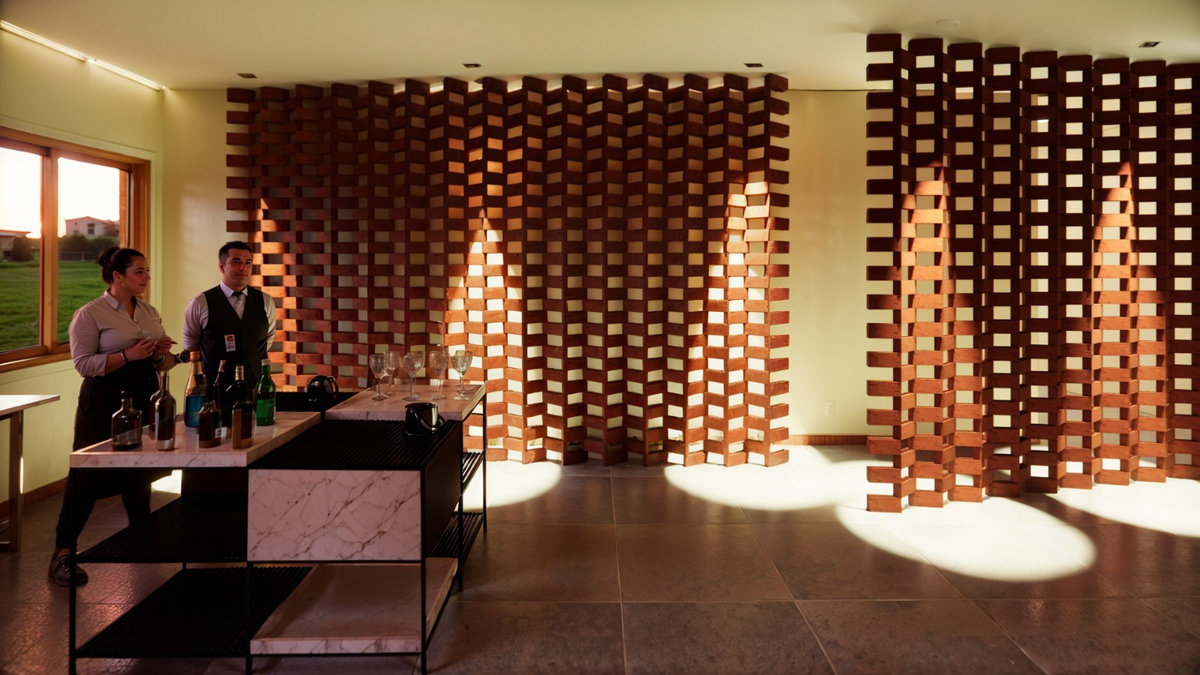 O brise de madeira que envolve a fachada cria ritmo, filtro de luz e privacidade, enquanto o paisagismo cuidadosamente posicionado reforça o vínculo com o entorno e a natureza. Com iluminação cênica, mobiliário sob medida e acabamentos de alta qualidade, o Espaço Oficial é um convite à celebração, um lugar pensado para encontros, memórias e pertencimento institucional.